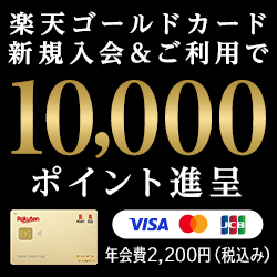 【ポイント獲得条件】新規カード発行(カード到着必須)・対象カード:楽天ゴールドカード※他の楽天カードはこちらからご確認ください。・初めてお申込後、カード発行が確認できた方のみ対象(既に家族カードをお持ちの場合でも、ご本人名義の本カード発行が初めてであれば対象)・ポイントで貯めるボタンをクリックしてから24時間以内のお申込みのみ対象