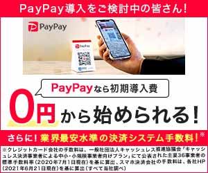PayPayは、お客様がスマホアプリでお店のバーコードを読み取ることで、お会計が即完了する便利なお支払いサービスです。初期導入費が0円で始められるため、 店舗様のご負担なく導入いただけます。そのため、昨今のキャッシュレスブームの影響もあり、導入店舗様が続々と増えてきております!※「読み取り支払い」のみ対象です。《おすすめポイント》【1】「0円で始められる」⇒初期導入費が0円!スマホやパソコンがあれば導入することができます。【2】QRコード決済 利用シェアNo.1※⇒いま一番使われているQR決済だから、集客アップにつながります。※インテージ SCI Payment 決済サービス / 決済手段別 決済回数構成比【3】QRコードを置くだけ⇒お客さまのスマホでQRコードを読み取るので、会計の時間を大幅に短縮できます。【4】手厚いサポート⇒24時間365日電話で相談可能。万が一の不正利用の際も全額入金を保証します。----------------------------------------------------------