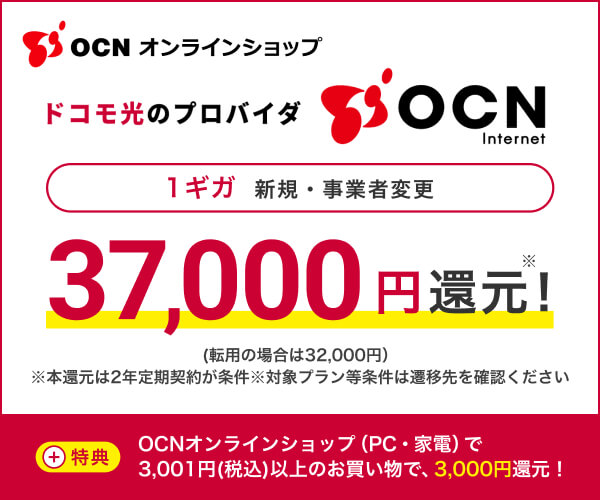 この記事では「OCNオンラインショップ【商品購入&ドコモ光】」のポイントサイト経由でもらえる情報を載せています。