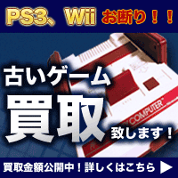 レトロゲームの宅配買取【レトログ】です。レトロゲームなら、どこよりも高く査定させていただきます!■レトログの強み1.箱に詰めて送るだけ、送料無料の【宅配買取】・お持ちの箱にゲームを詰めて、集荷依頼をするだけで発送できます。・必要な方には、無料で宅配キット(ダンボールなどの資材一式)を無料でお送りします。2.レトロゲーム専門店だからできる【高価買取】・レトロゲームの知識に特化したスタッフが査定するので、高価買取が可能です。・箱や説明書がなくても、しっかり査定させて頂きます。3.不安感ナシの【安心査定】・ホームページにて買取金額リストを公開しているので、おおよその査定額を事前にお調べいただけます。・お値段がついたお品物はすべて1点ごとの明細をお出しします。----------------------------------------------------------